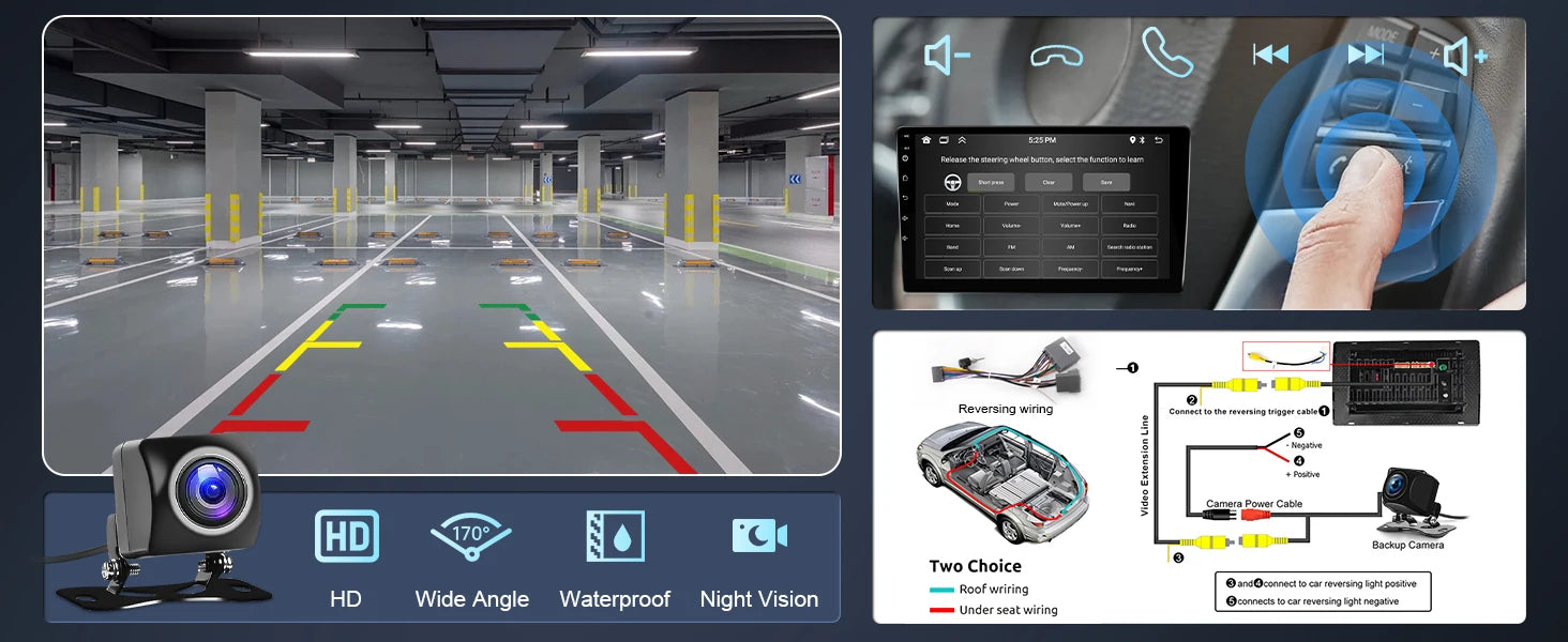 ▶ Free Backup Camera: 170-degree ultra-wide angle, waterproof design;