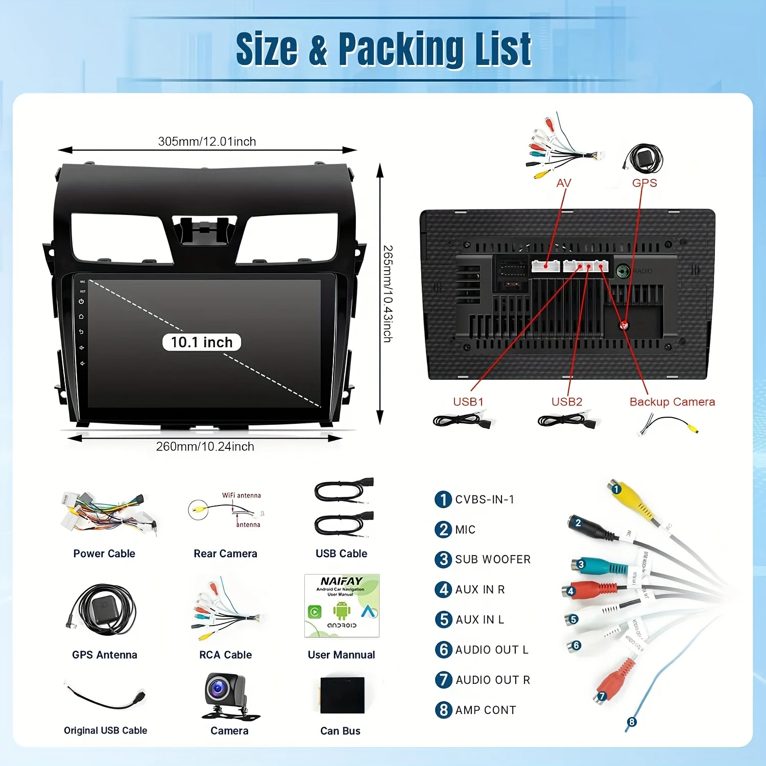 ● The "CA-MIN" reversing input cable comes with two small antennas to enhance the radio's WiFi signals.