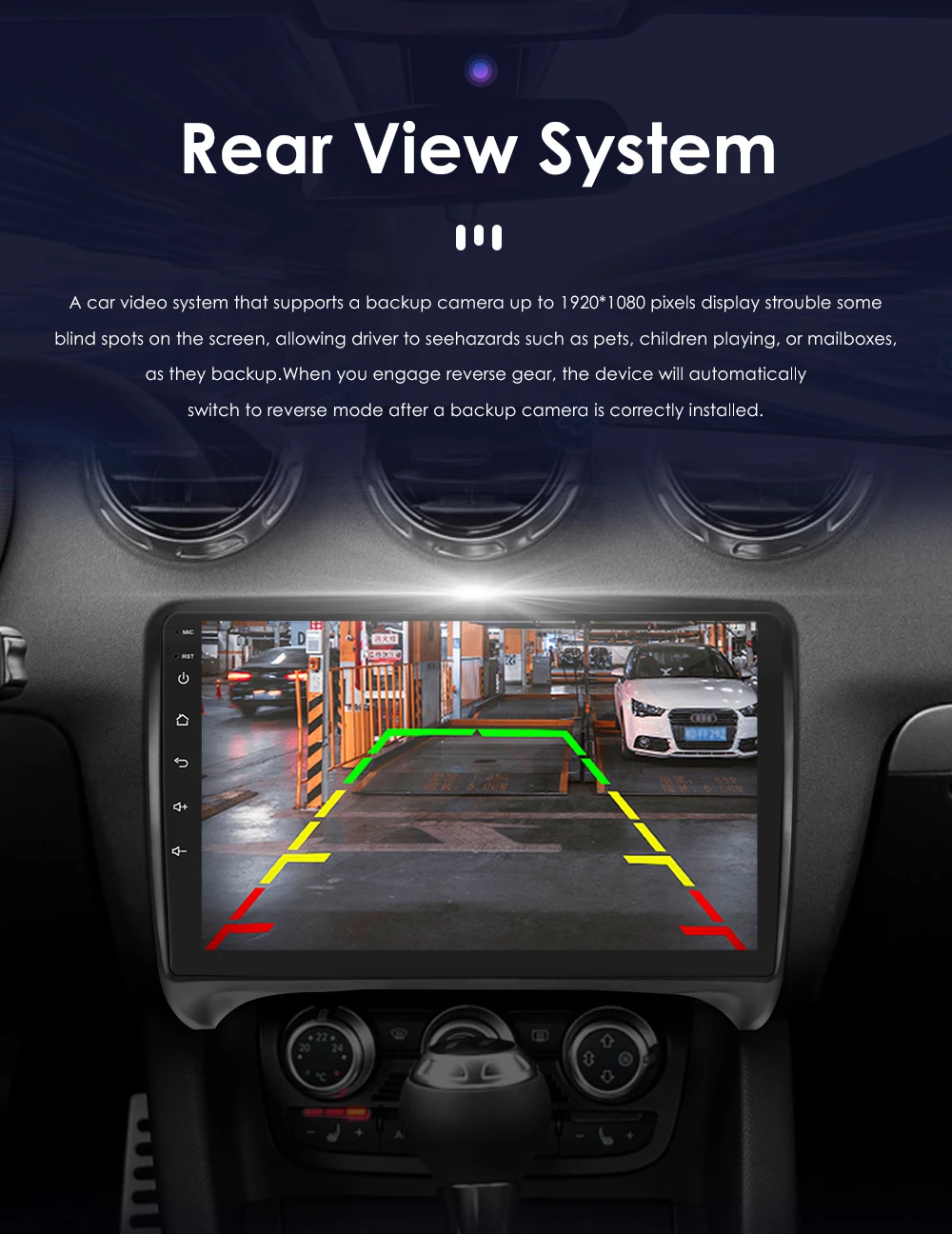 Rear View System(Rear View Camera needs to order separately): A car video system that supports a backup camera displays troublesome blind spots on a monitor , allowing a driver to see hazard such as pets ,children playing ,or mailboxes ,as they backup.