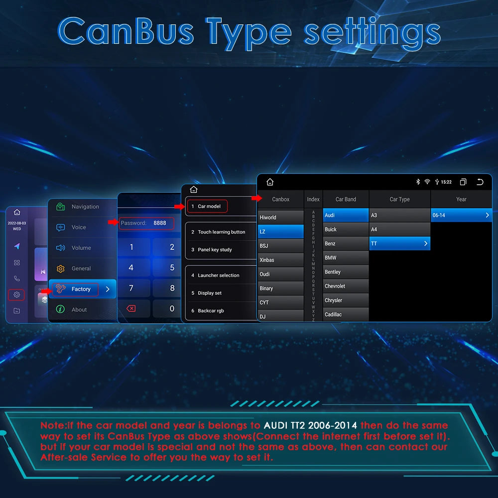 Car Information Display: Canbus Type settings:LZ-Audi-TT-06~14-CONFIRM