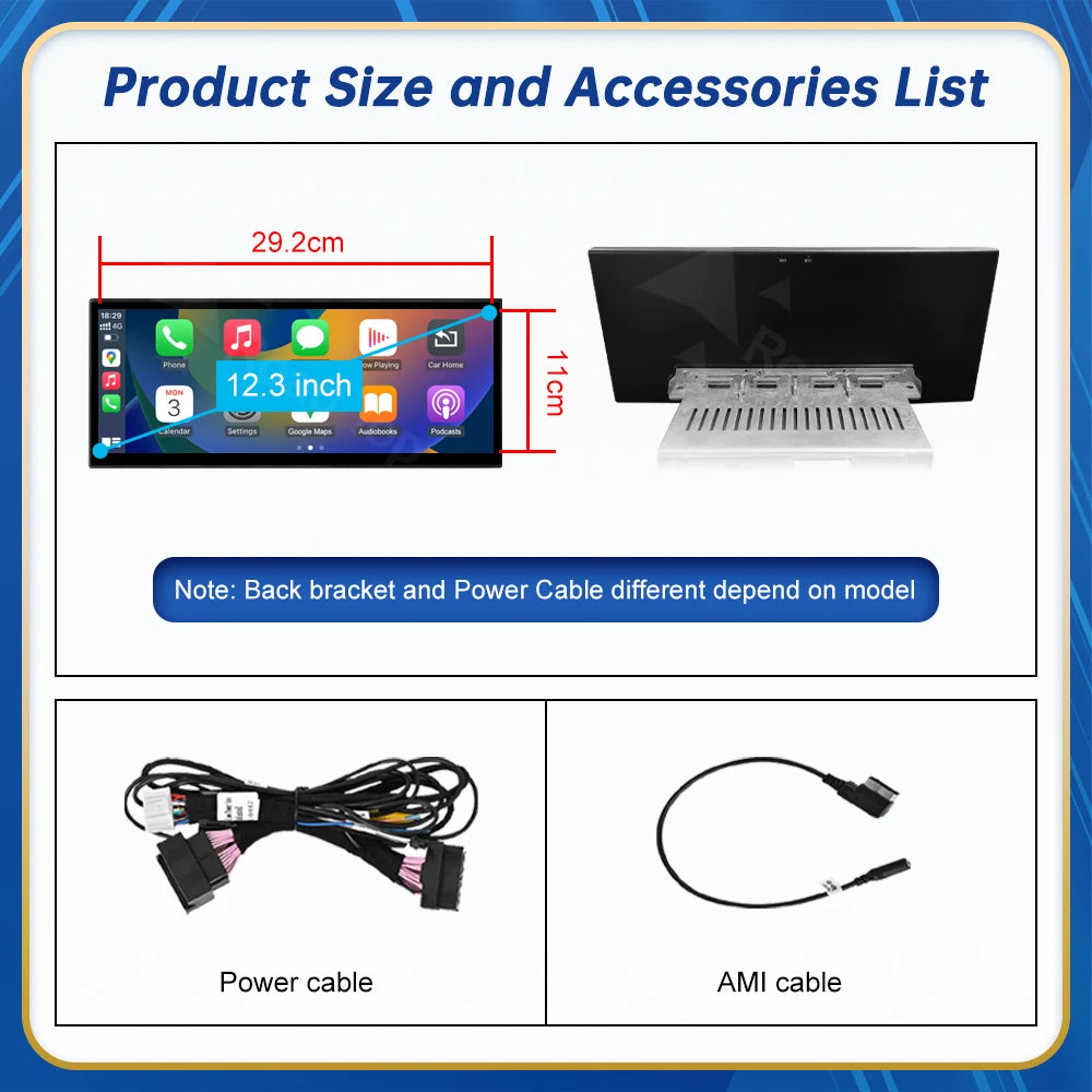 12.3inch Multimedia Player Carplay Display For Audi 2012-2018